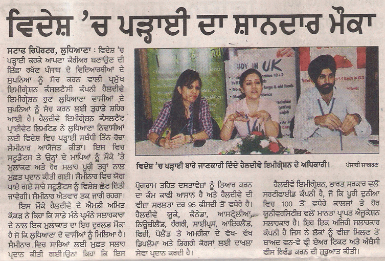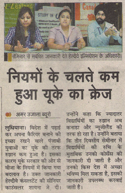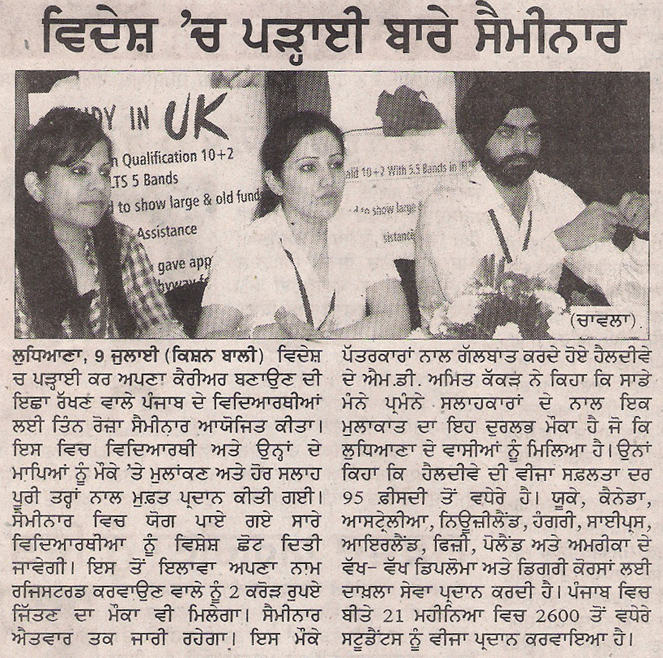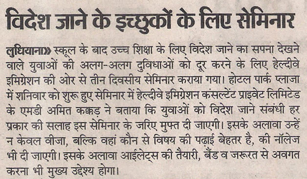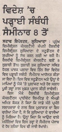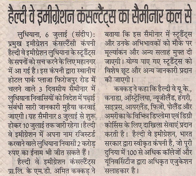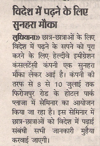 News paper clippings of Healthyway Immigration Free Mega seminar In Ludhiana.