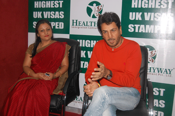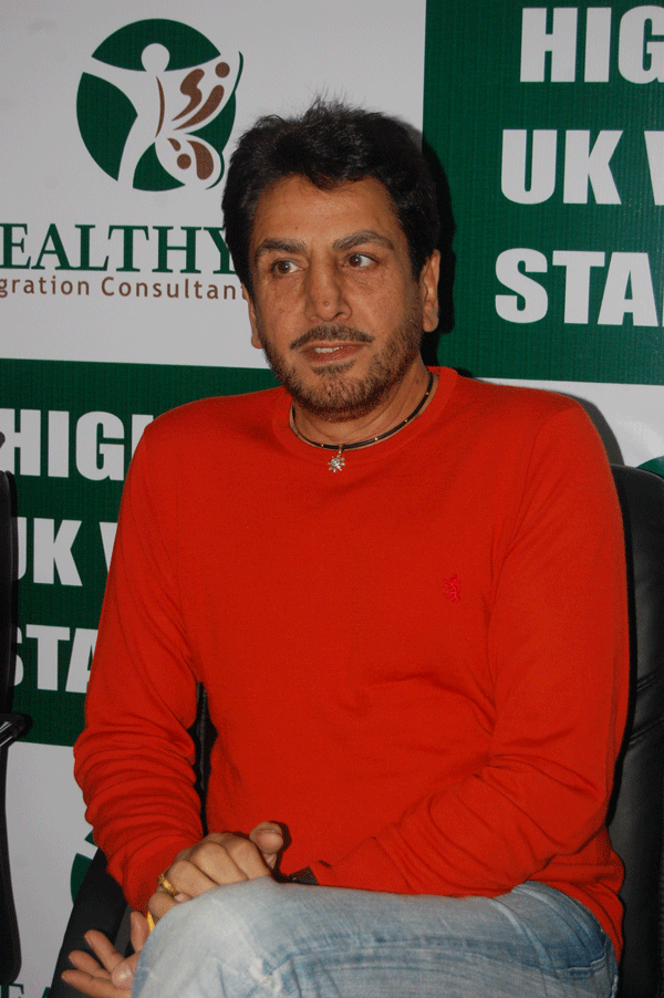 Gurdass Mann in healthyway immigration Head office Chandigarh during the press conference.