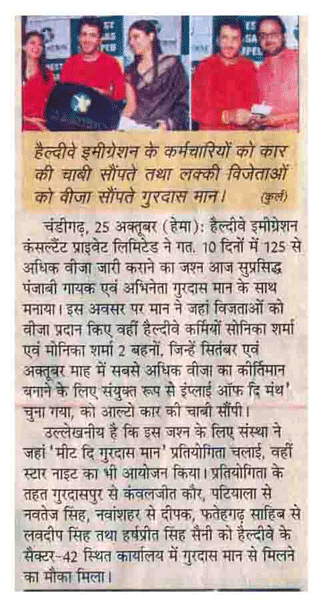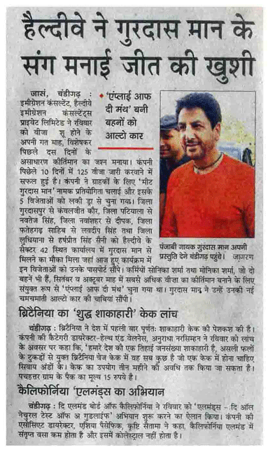 • Danik Jagran, India's leading National Hindi Newspaper also gave the appreciation letter to Healthy Way for getting Highest UK Visas from North.