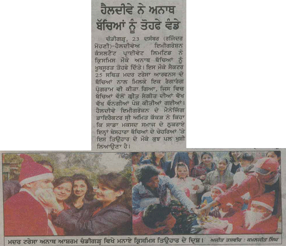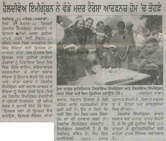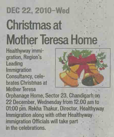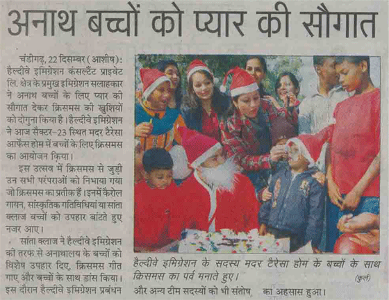 Healthyway Immigration Consultancy Pvt Ltd, well known as best education consultants in Chandigarh celebrates Christmas at Mother Teresa Orphanage Home, sector 23 Chandigarh on 22nd December. Healthyway Immigration distributed gifts and celebrated the occasion with love deprived orphan children.
