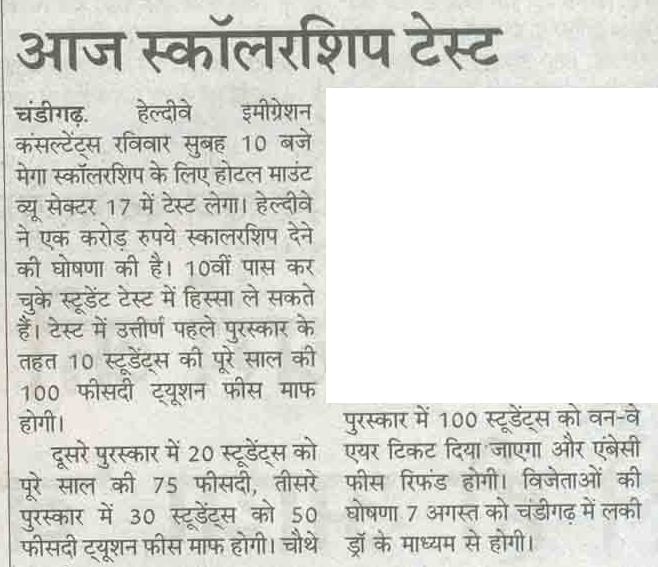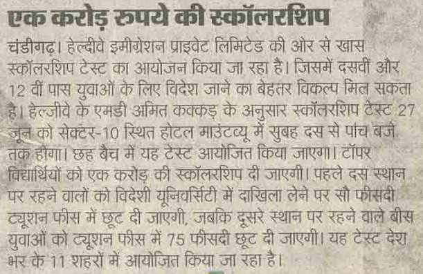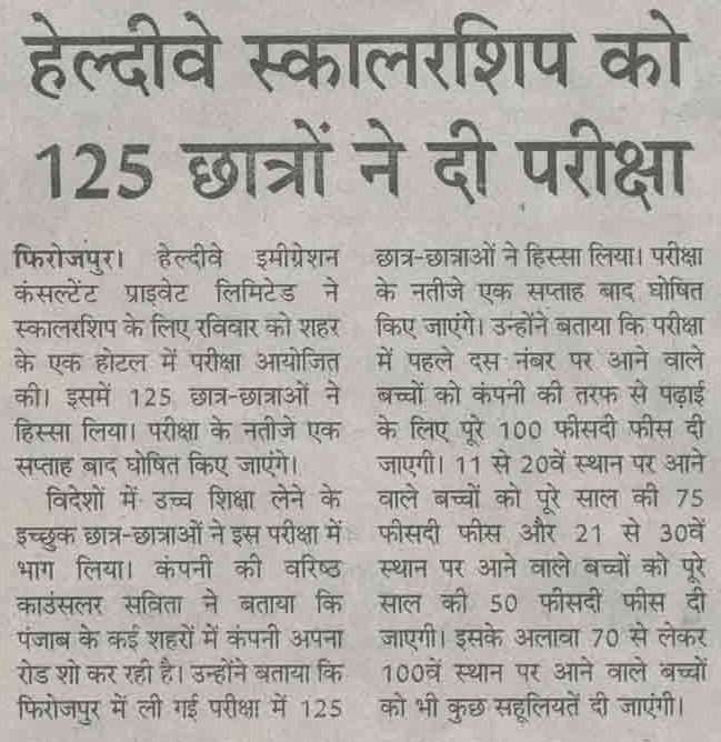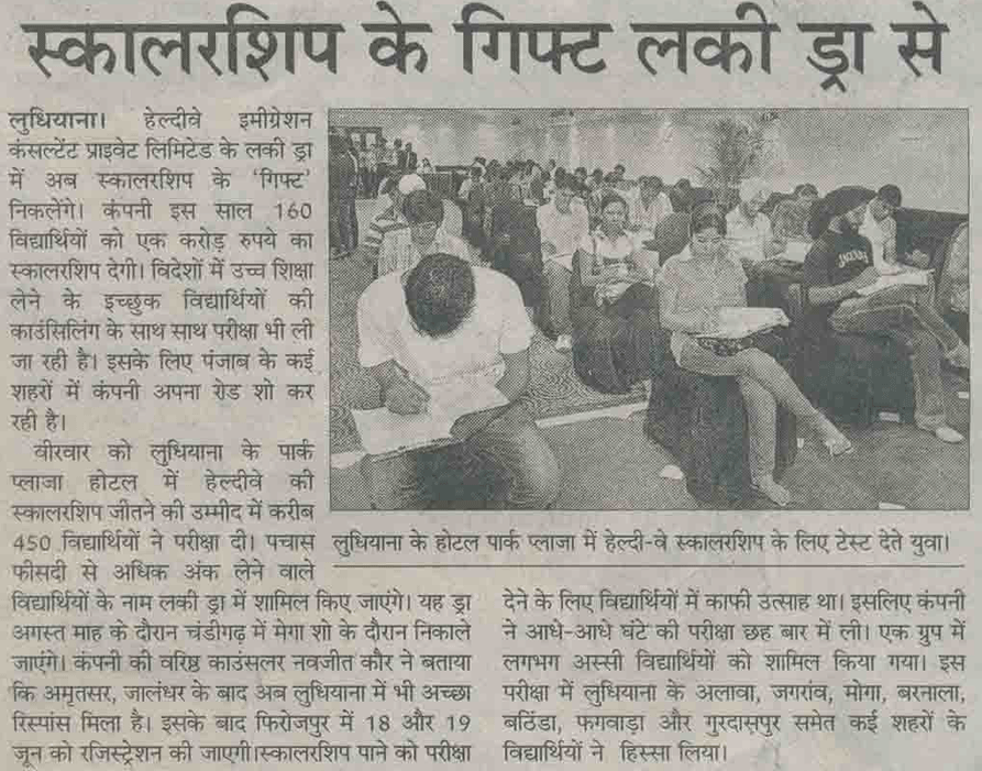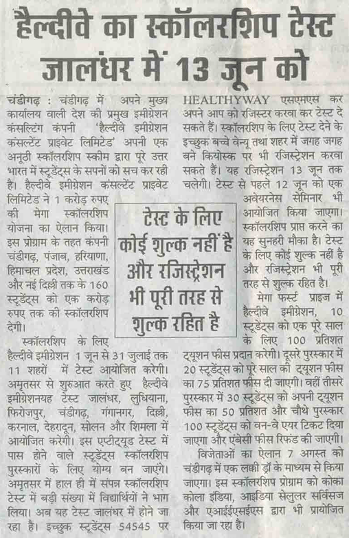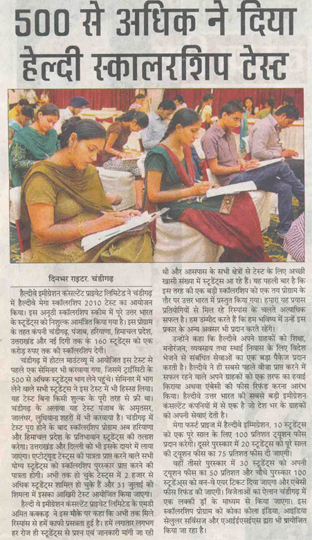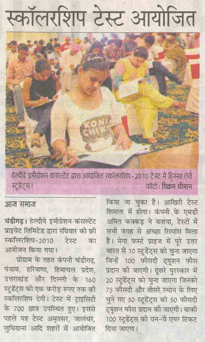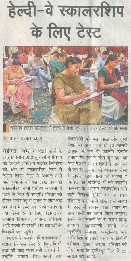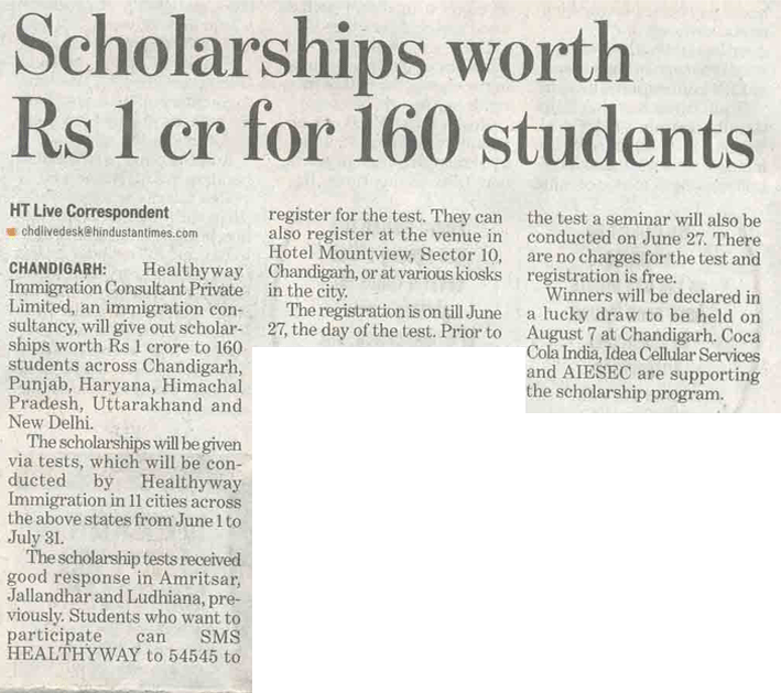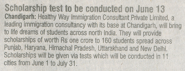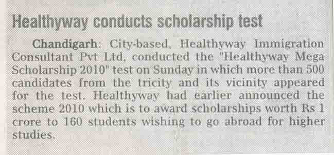 Healthyway Consultants Pvt Ltd, Chandigarh, consultants with highest UK visa stamped from Punjab, conducted Healthyway Mega Scholarship 2010 test in which more than 500 candidates from the tricity and its vicinity appeared for the test. Healthyway had earlier announced the scheme 2010 which is to award scholarships worth Rs 1 crore to 160 students wishing to go abroad for higher studies.